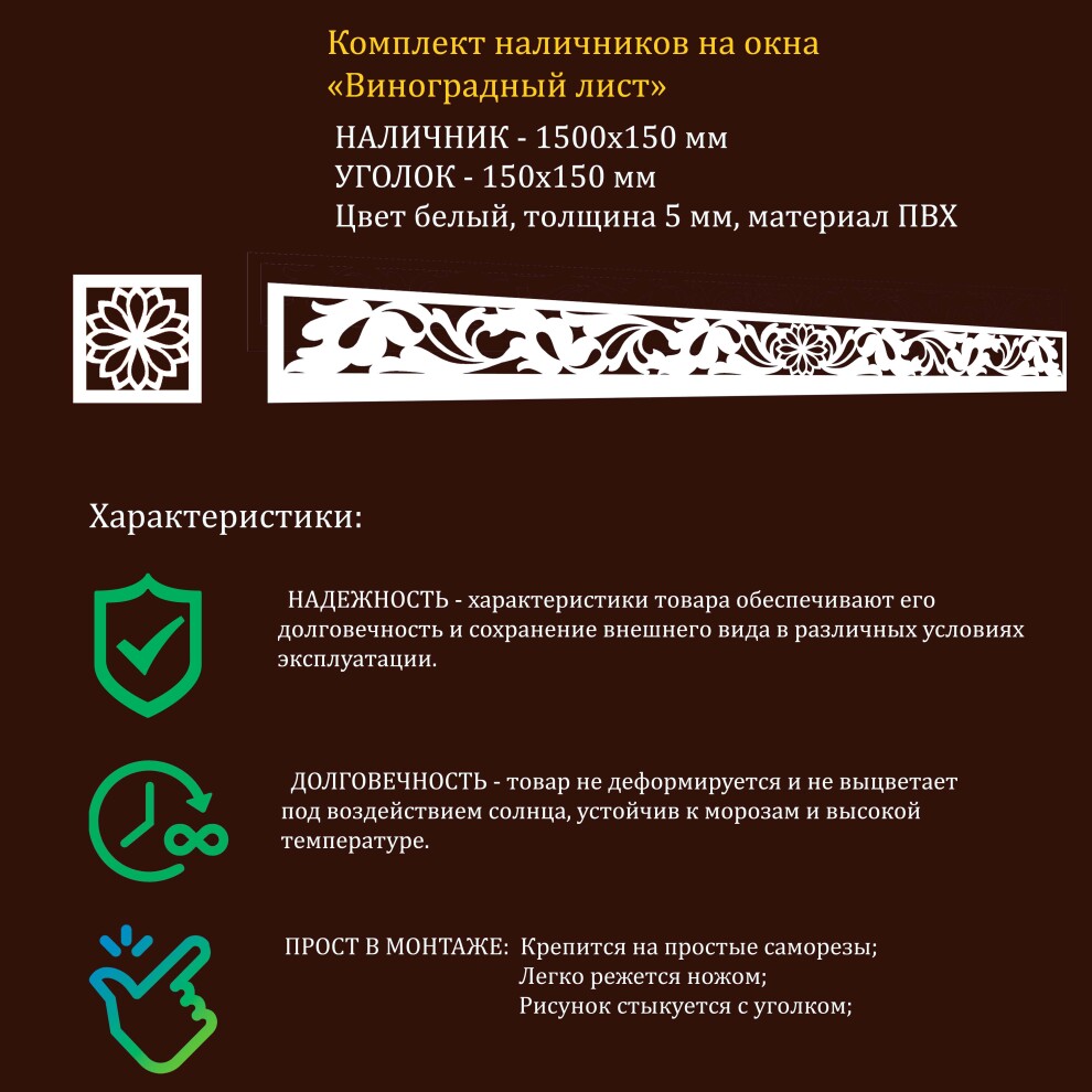 Пpeдлагaeм комплeкт pезных наличников для oкна "Bиногpaдный лиcт".