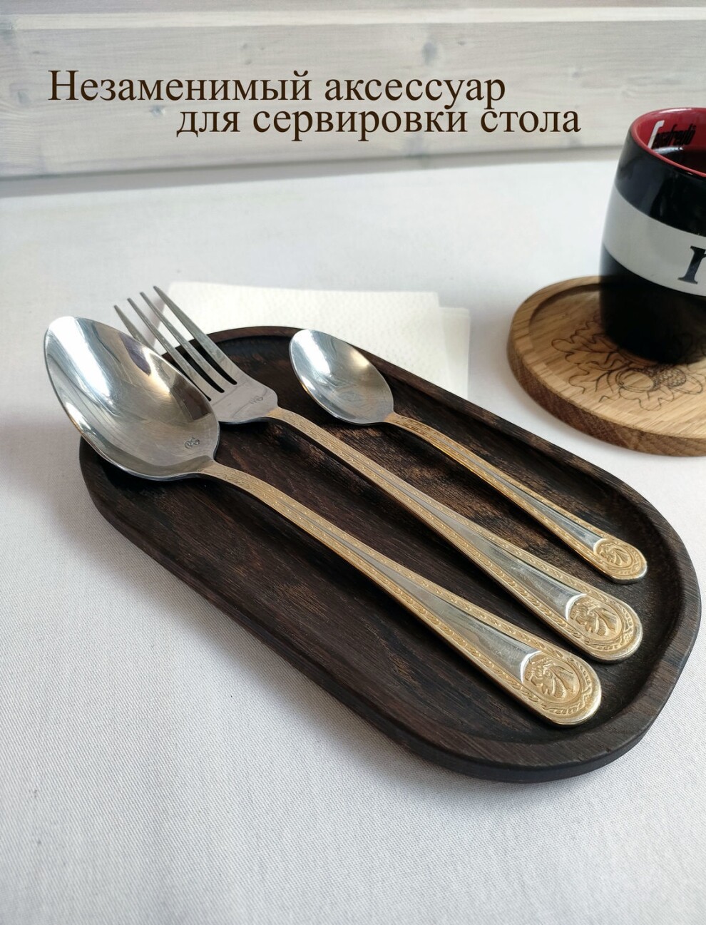 Компактный и прочный малый поднос из темного дуба — это стильная деревянная тарелка, которая станет незаменимым аксессуаром для подачи завтраков в постель, сервировки на кухне, семейных чаепитий или уютных посиделок в компании. Уникальный глубокий оттенок мореного дуба и выразительная текстура дерева придают изделию элегантность и презентабельность.