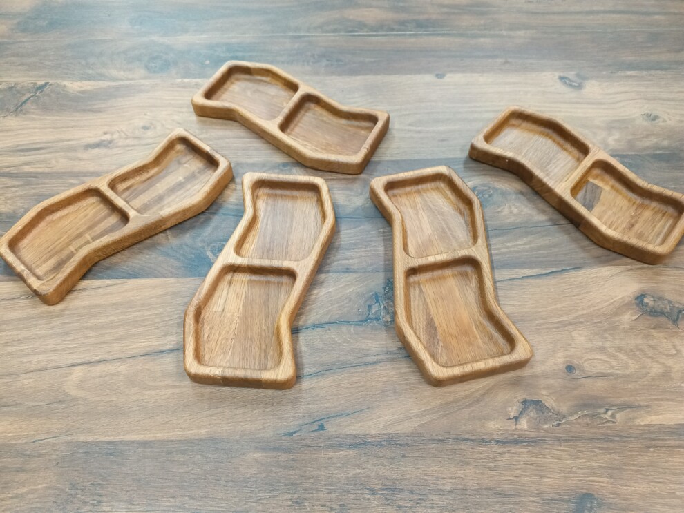 Используется как блюдо, тарелка или компактный поднос для завтраков, романтических вечеров и стильных встреч.Каждая менажница ручной работы — уникальна и станет отличным подарком. Позвольте сервировке вашего стола выделиться с оригинальной геометрией и природной фактурой дуба.