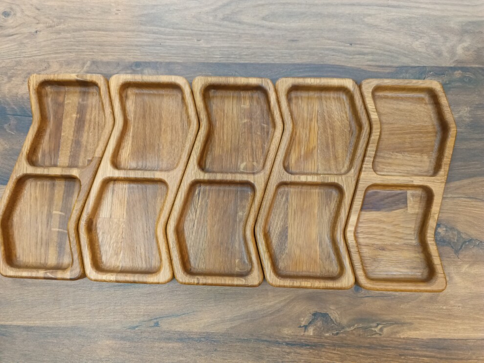 Изделие выполнено из качественного и твердого дуба, тщательно шлифовано, покрыто сертифицированным маслом и пчелиным воском. Менажница безопасна для взрослых и детей, гладкая и приятная на ощупь.