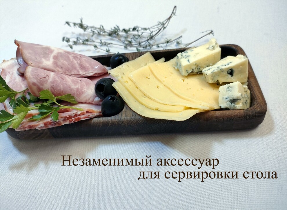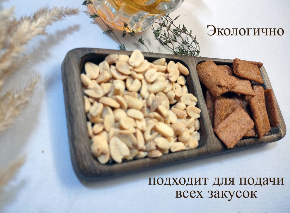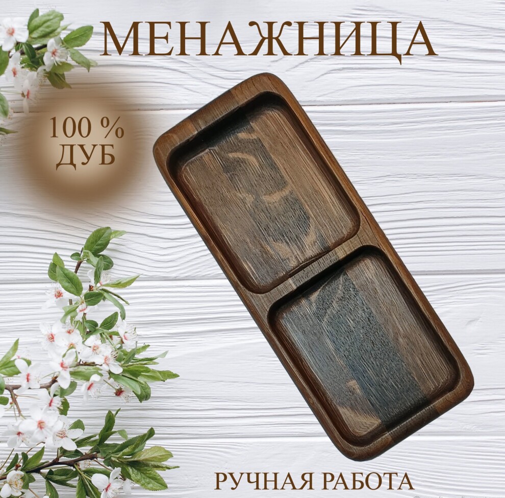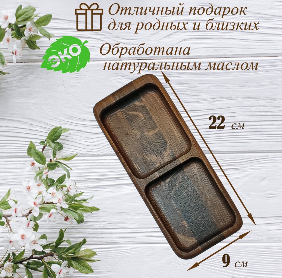 Менажница из темного мореного дуба с двумя глубокими ячейками — эффектная и практичная посуда для дома и сервировки стола.