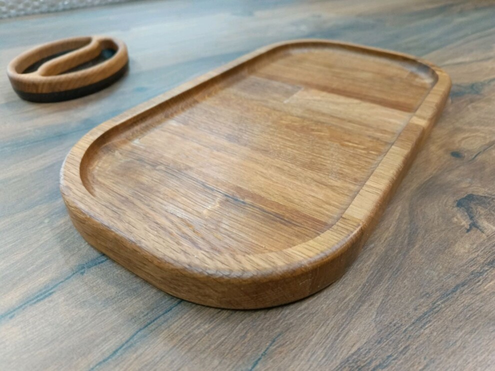 Красивый и прочный деревянный поднос из натурального дуба украсит любую кухню, станет незаменимым атрибутом для завтраков в постель, для семейного чаепития, для праздника в шумной компании.