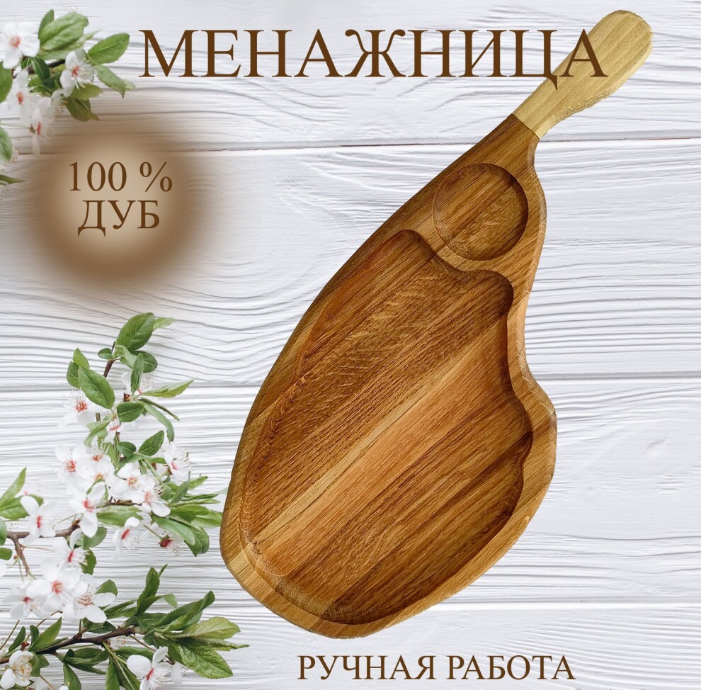 Поднос из дуба с ручкой предназначен для разноса сыра, мясных блюд, снеков и канапе.