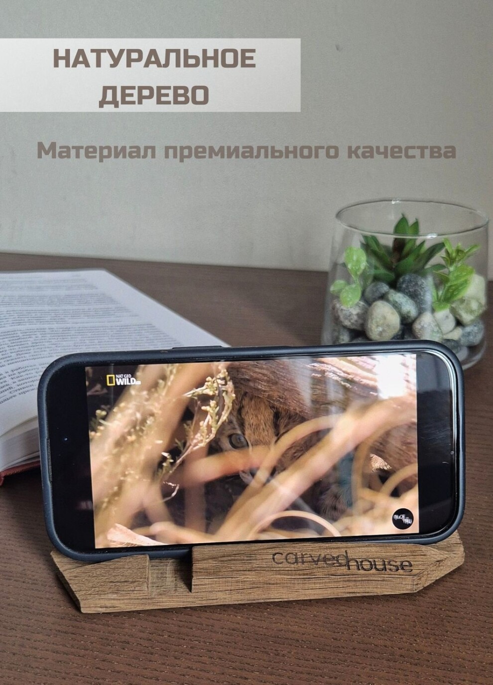 Превратите обычный гаджет в стильный акцент вашего пространства! Деревянная подставка для телефона от Carved House — это гармония современного дизайна, природной теплоты и безупречной функциональности.