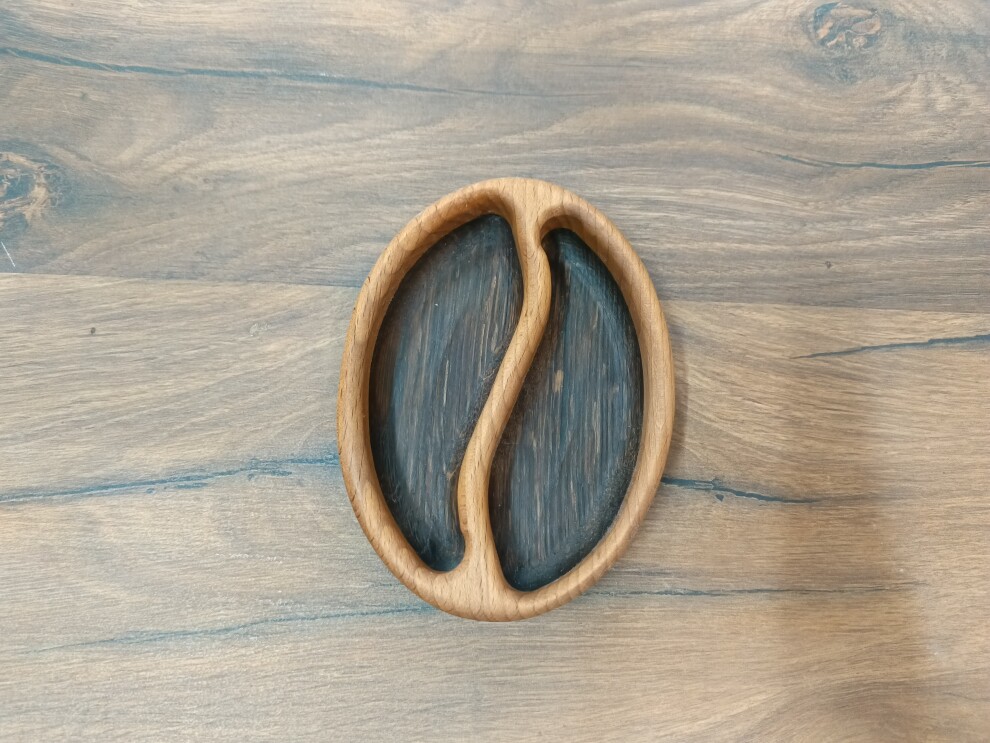 Деревянная подставка «Кофейное зерно» из натурального дуба — универсальный аксессуар для хранения мелочей и украшений. Изготовлена из качественного древесного материала с ручной обработкой.