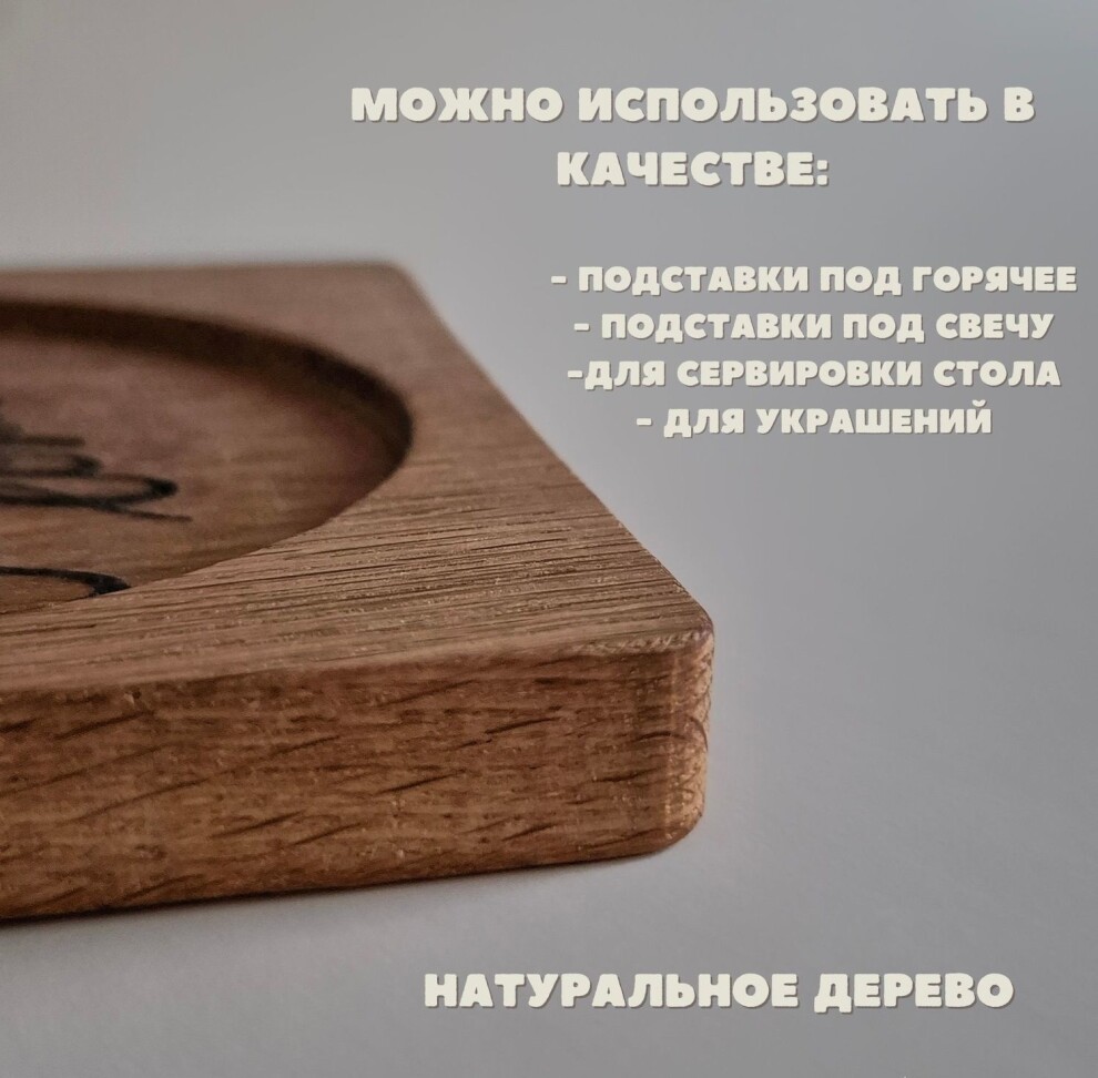 Хороша как подставка под горячее или поднос. Подставка изготовлена из цельного массива дерева высокого качества. Края имеют углубленный кант. Они обработаны методом шлифования, поэтому гладкие, без зазубрин или заусенец. Экологичная, с приятным запахом настоящего дерева. Станет отличным подарком для любой хозяйки: подруге, сестре или жене.